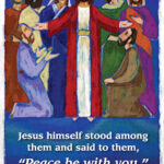 36 Now as they said these things, Jesus Himself stood in the midst of them, and said to them, “Peace to you.” Its Sunday. The people are gathered. Jesus is in their midst. He gives them his peace. He sends them out into the world. What am I describing? Am I describing our text or
